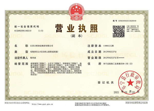 江蘇萬順建設集團于2012年2月經鹽城市阜寧縣工商行政管理局批準設立,目前已形成建筑施工總承包、建材銷售等綜合性、多元化企業,也是一家擁有現代經營管理模式、追求可持續發展的企業。